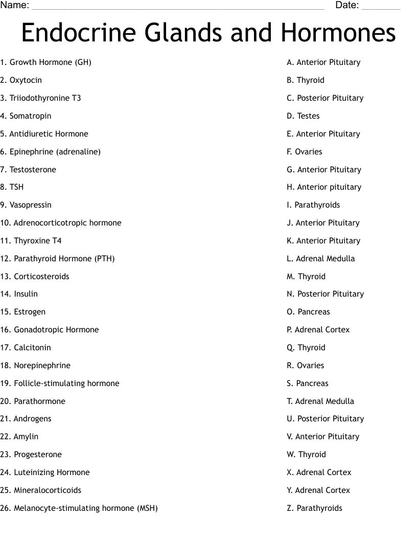 Endocrine Glands And Hormones Worksheet WordMint