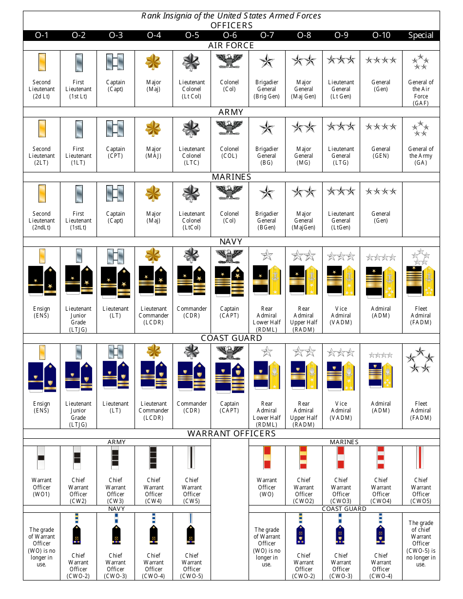 Military Officer Rank Chart Printable