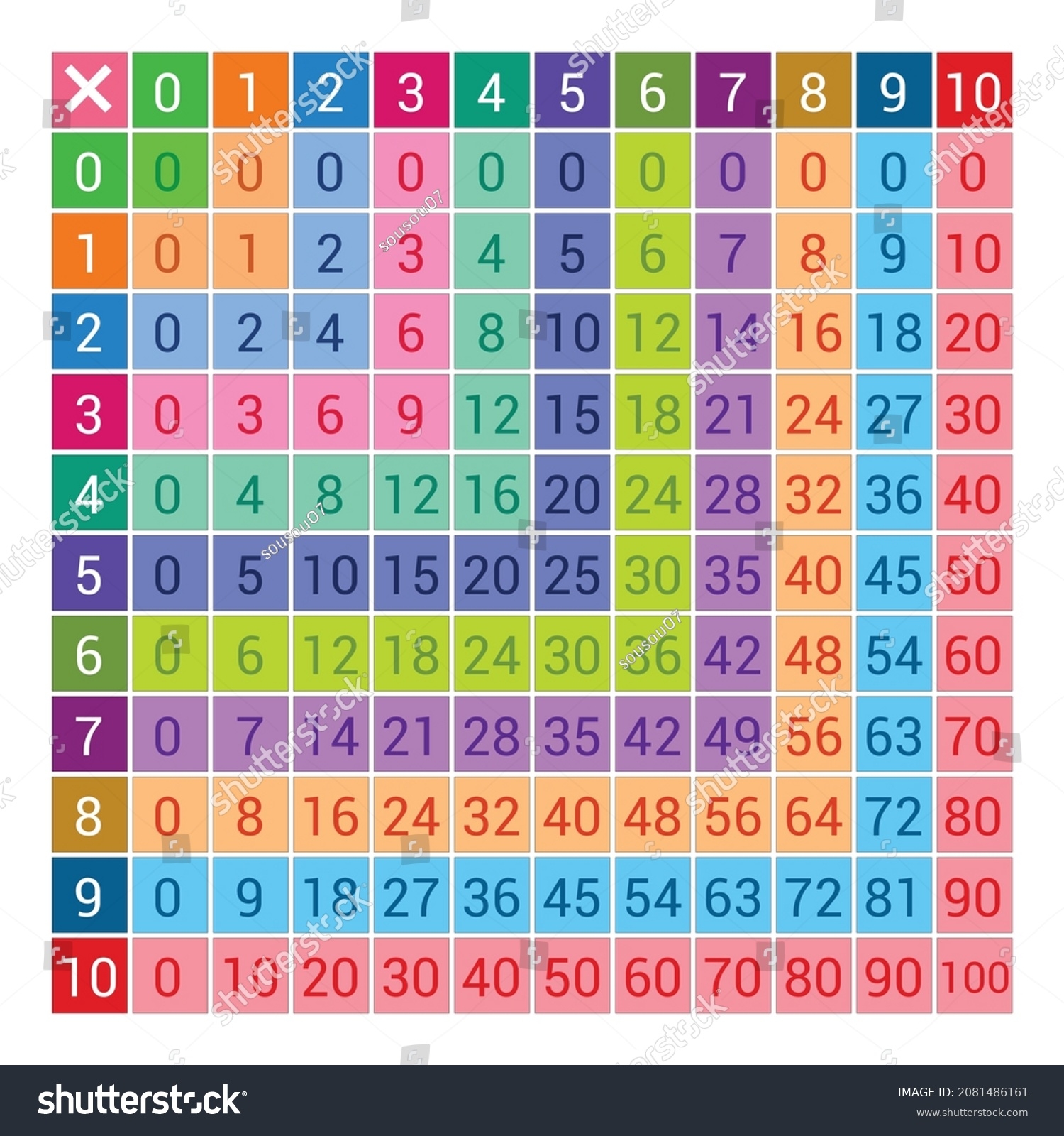 Colorful Multiplication Table Chart 0 10 Stock Vector Royalty Free 2081486161 Shutterstock