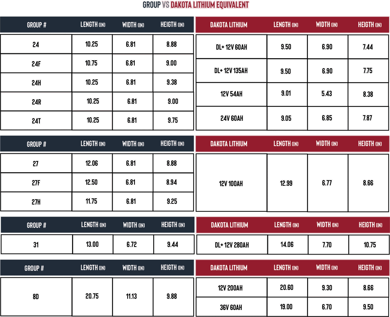 Marine Battery Group Size Chart Dakota Lithium Battery