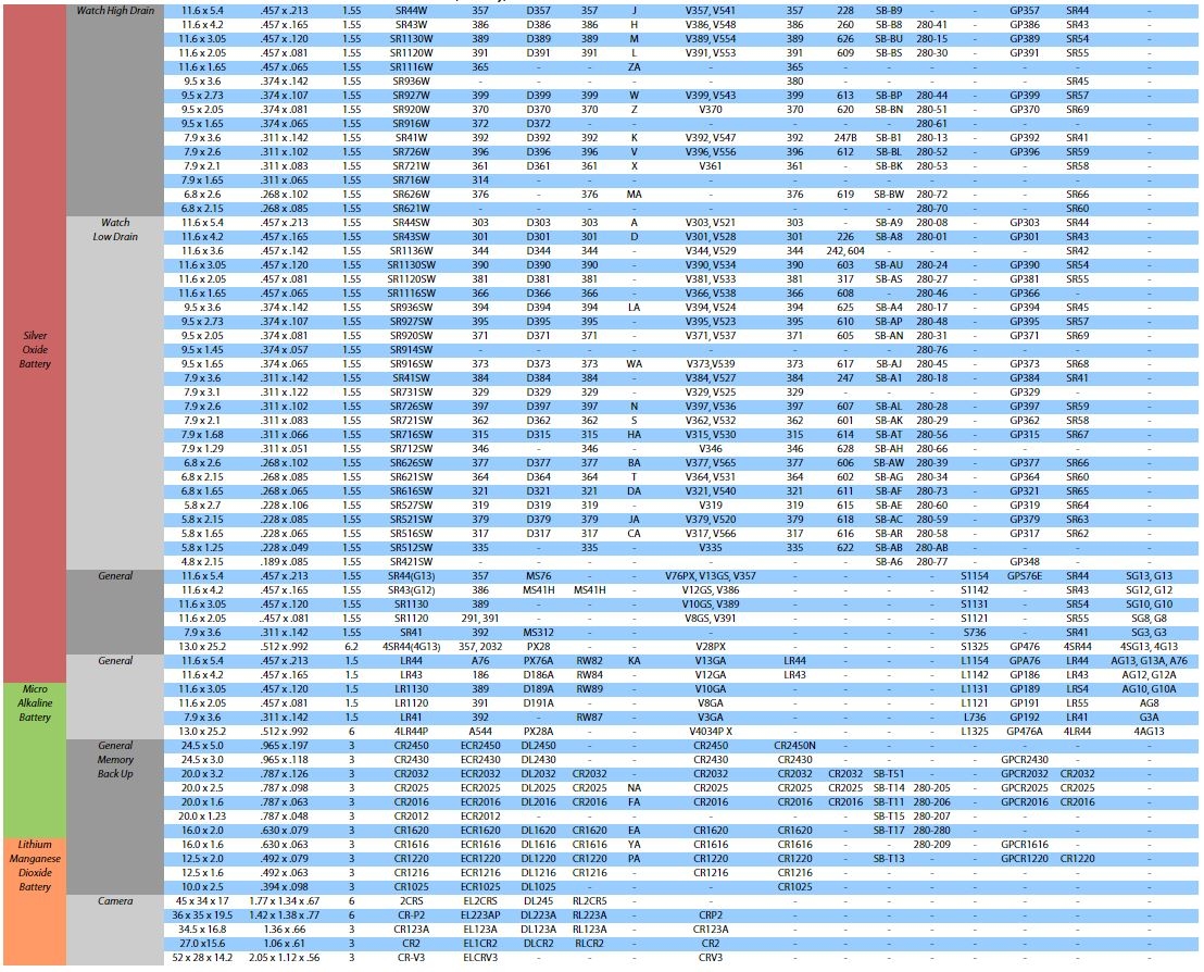 Hot Button Cell Battery Cross Reference Top Sale Watch Battery Cross Reference Charts Cell Conversion Esslinger Watchmaker Supplies Blog Allplanttraining co uk