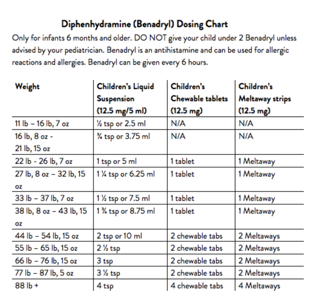 Printable Benadryl Dosing Chart