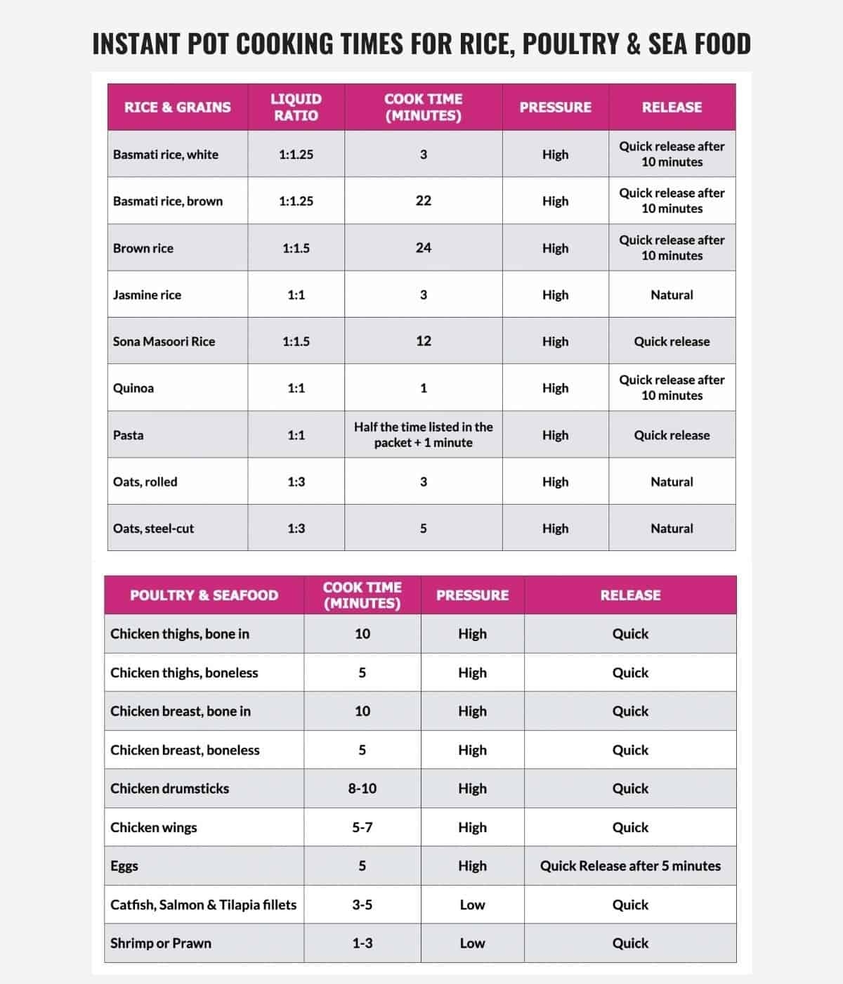 Chart Pressure Cooker Rice Cooker Chart Instant Pot Beef Pressure Cook Time Time Chart Instant Pot