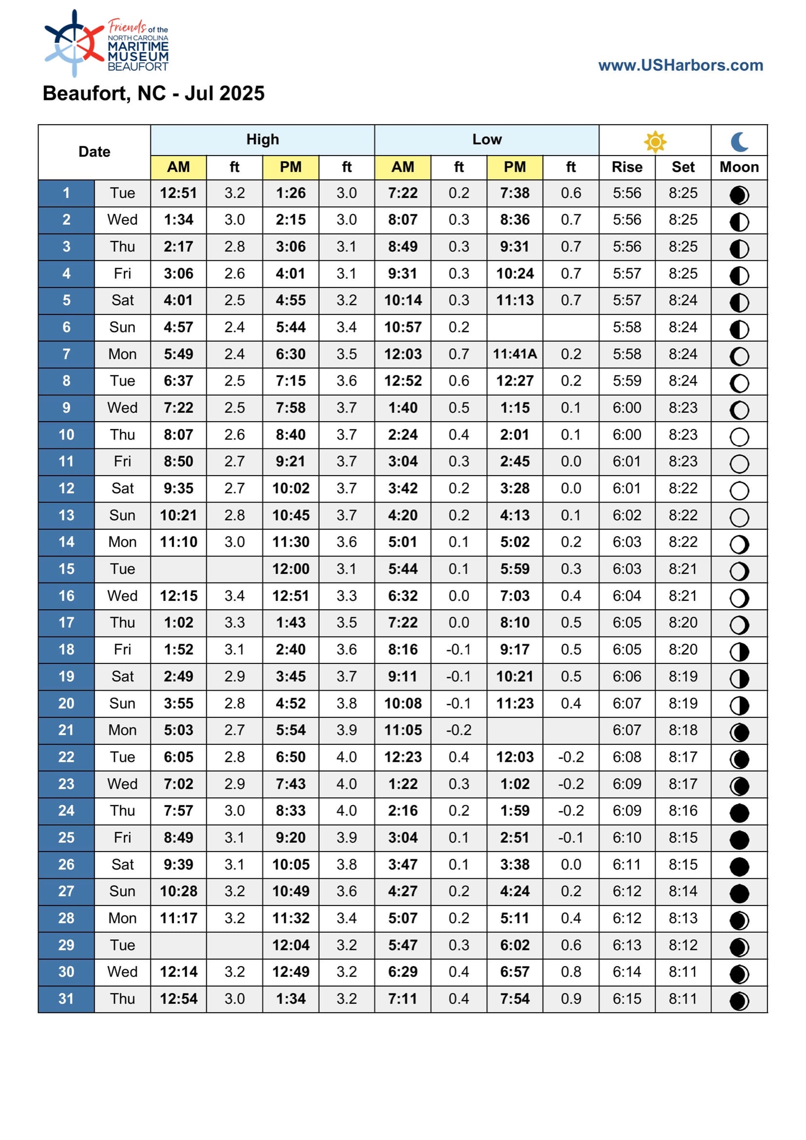 Tide Charts 2025 Friends Of The North Carolina Maritime Museum