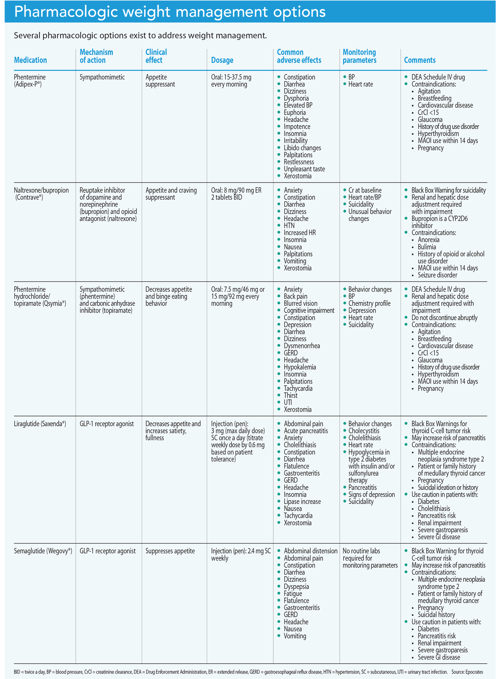 Weight Loss Medication Comparison Chart